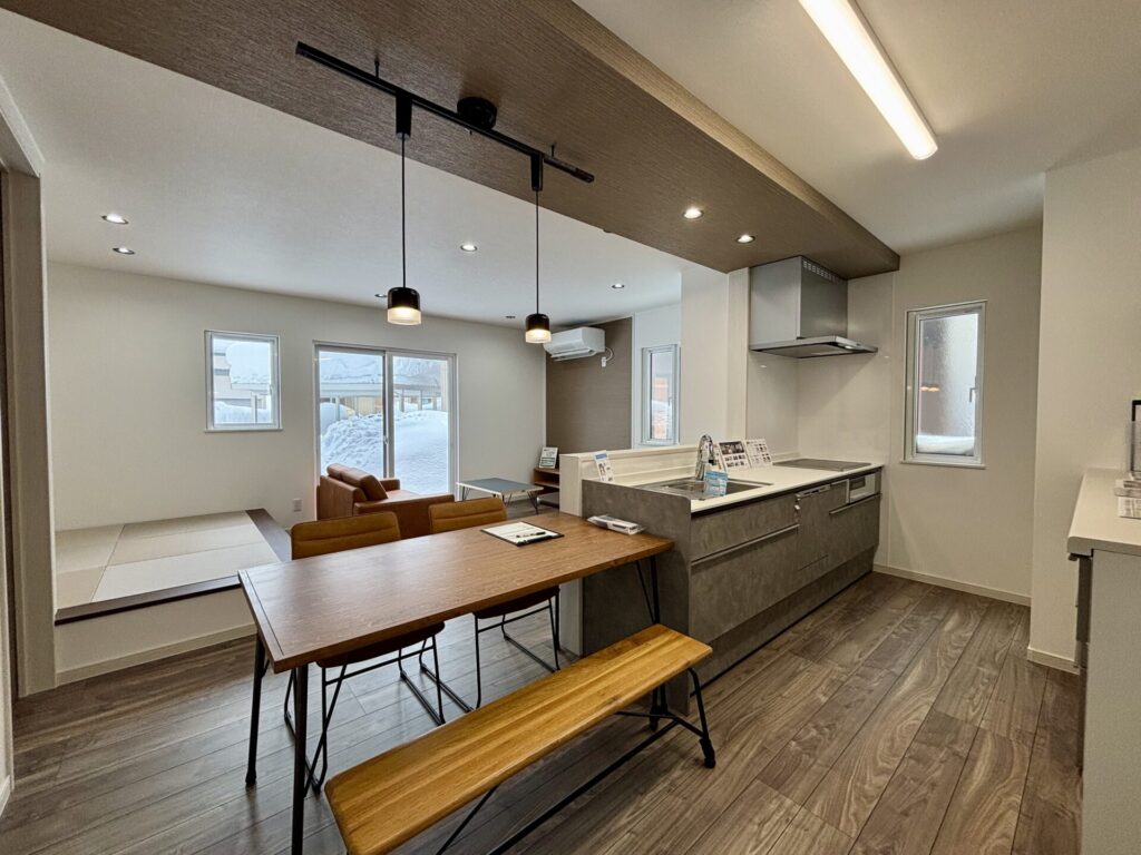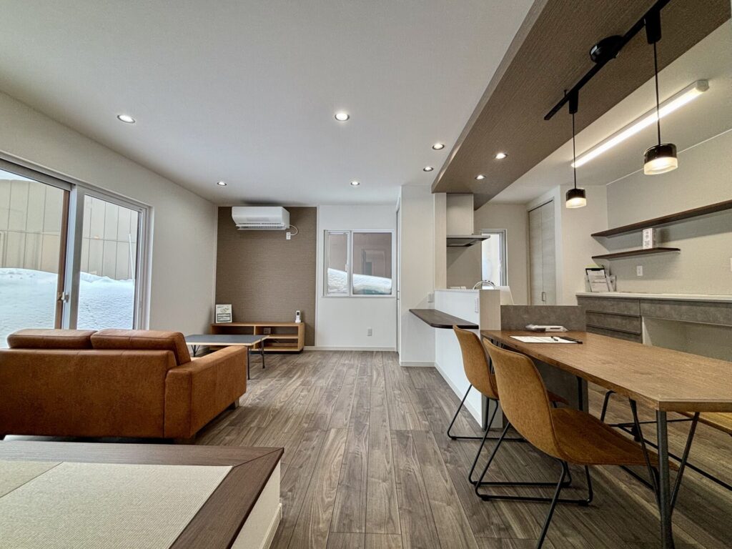 リビングには寒冷地専用の高性能エアコン付きです。