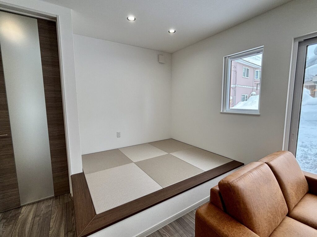 マルチに活躍する小上がりスペース。丈夫な和紙畳となっておりデザインもスッキリ。