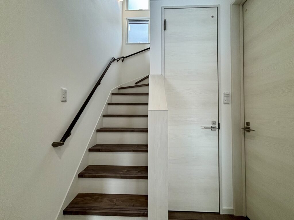 階段上部には採光&通風を考えた窓を2つ配置。