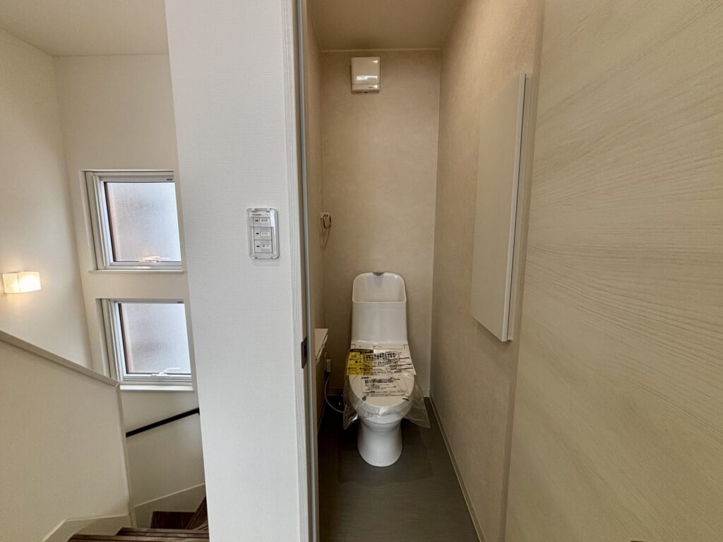 2階にもトイレあります。朝の混み合う時間帯も安心。