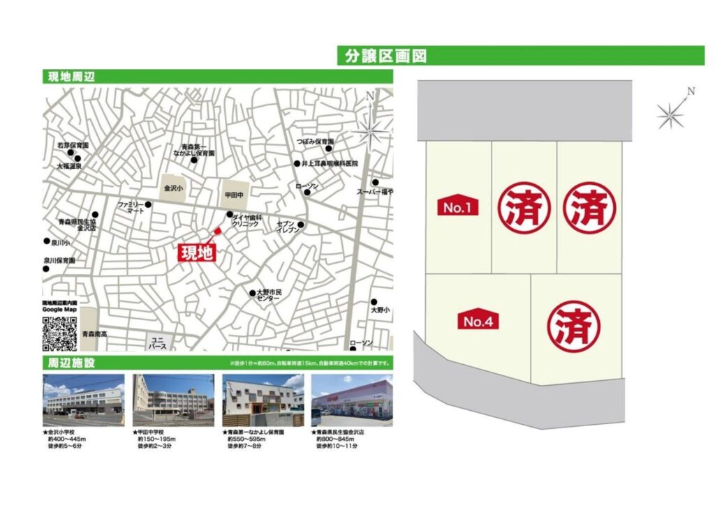 | 備考 | ・金沢小学校通りまですぐ。交通至便。 ・買い物施設、学校、病院、コンビニなど徒歩圏の高い利便性 ・安心して購入できる分譲地。 ・注文住宅の煩わしさや予算に悩む事もありません。 |
